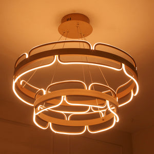 TheKings Choice LED Chandelier looks absolutely amazing and brings a bold decorative charm to any space. Crafted with matte gold-finished metal and premium acrylic, its layered circular design creates a warm, rich glow that transforms the room’s ambience. Perfect for the living room, dining room, and bedroom, this chandelier adds a modern yet grand look. The artistic geometric pattern spreads light beautifully, making it a stunning centerpiece for contemporary interiors.