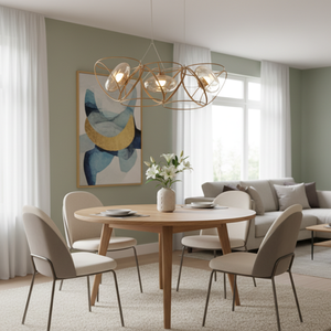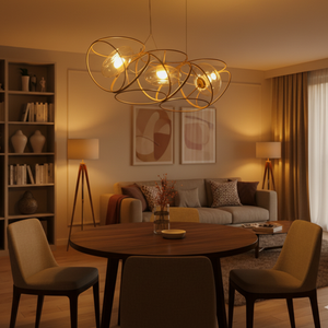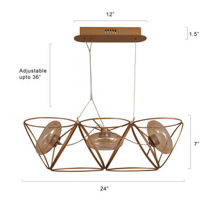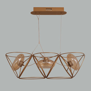 The Lost in Time LED Chandelier is a statement piece with an artistic, geometric design that is stunningly beautiful. It's highly versatile and suits the living room, dining room, and bedrooms. The fixture features a captivating structure of matt brass-finished metal frames and is fitted with warm amber glass globes. This unique combination creates a warm, inviting glow and a contemporary focal point for any modern interior.