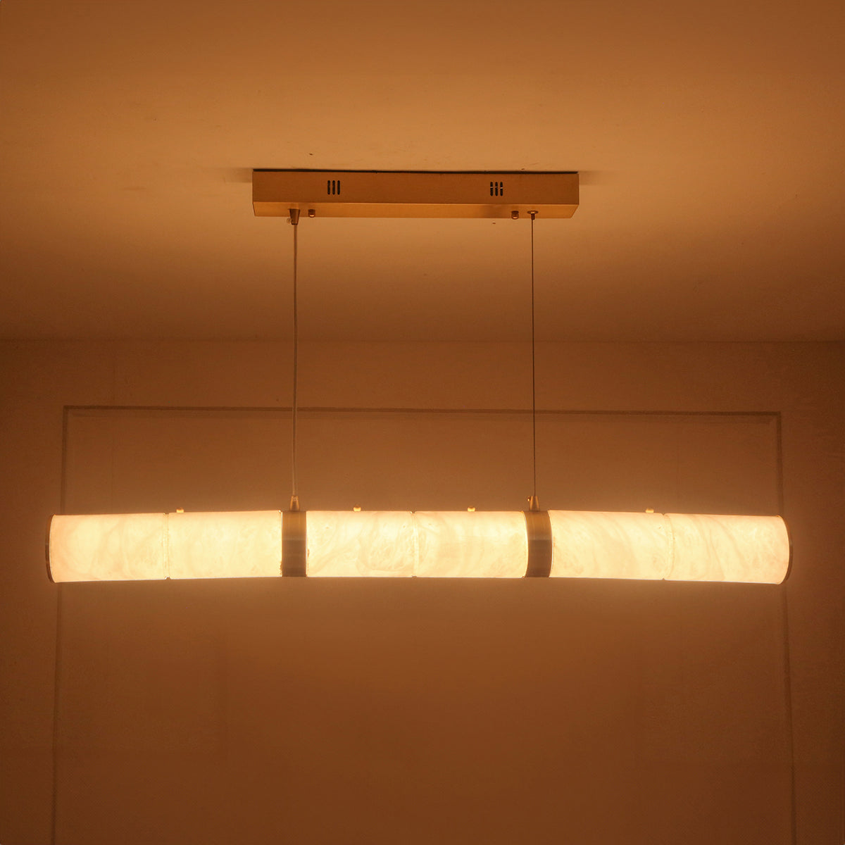 The Spanish Love Marble LED Chandelier is a graceful lighting piece that adds charm and warmth to any space. Crafted with brass-finished metal and Premium Natural Spanish marble, this chandelier beautifully blends luxury with modern design. Its cylindrical marble shades emit a bright, warm glow, making it perfect for living rooms, dining areas, and bedrooms. Elegant yet functional, the Spanish Love Chandelier not only brightens your interiors but also creates a welcoming and stylish ambiance for your home.