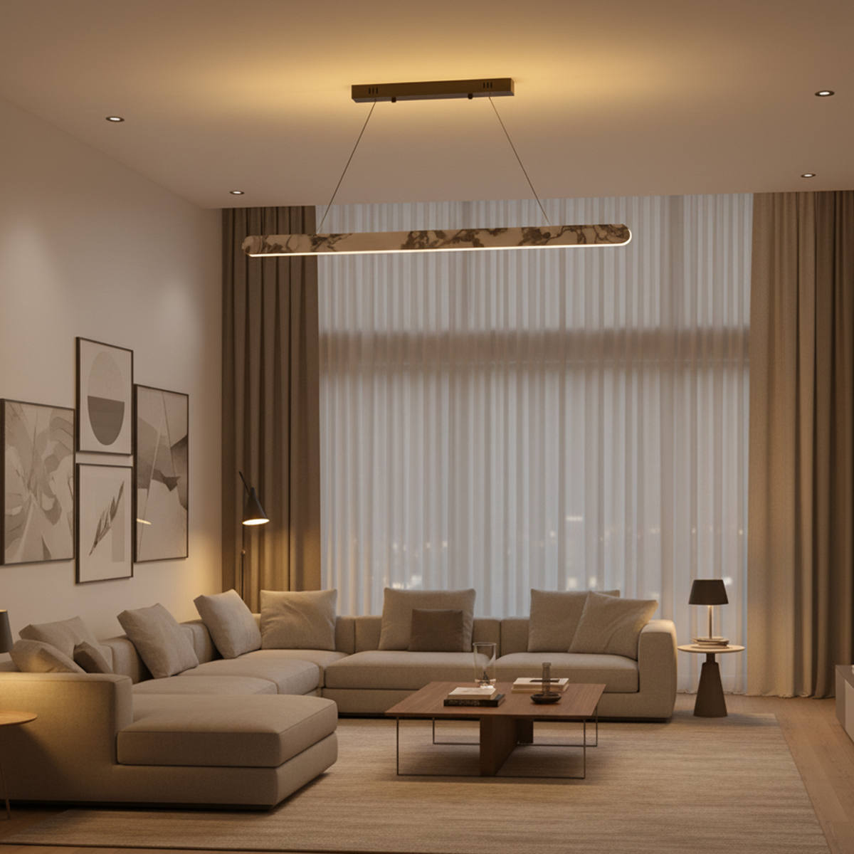 The Victory Up Down LED Chandelier is a stunning blend of elegance and functionality, perfect for enhancing modern interiors. Crafted with black-finished metal and premium slate material, this chandelier exudes a refined charm. Its up and down lighting design creates a warm, inviting glow, making it ideal for living rooms, dining areas, and bedrooms. With its unique linear form and stylish finish, the Victory chandelier transforms any space into a sophisticated and welcoming environment.