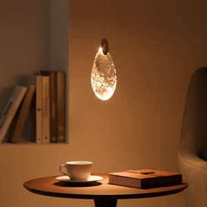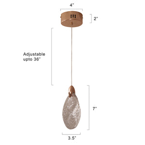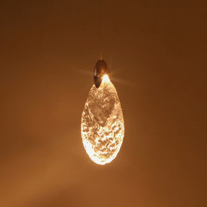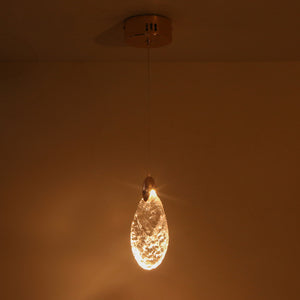 The Crystal Leaf LED Pendant Light is a stunningly beautiful fixture that brings an artistic, modern touch to your home. Its elegant design features a unique, tear-drop or leaf-shaped crystal glass shade with a textured surface that beautifully diffuses the light. This fixture is accented with a polished rose gold-finished metal piece at the top, which complements the warm glow of the integrated LED light. Perfect for creating an intimate and sophisticated ambiance, this light is highly versatile and suits the living room, dining room, or bedroom. The combination of the reflective crystal and the rose gold metal makes it a true statement piece.