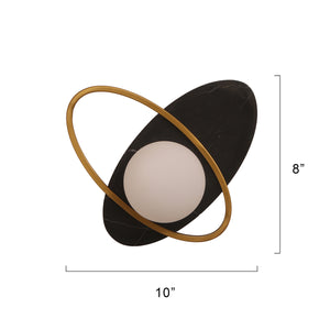 This Fun Loving Black Marble LED Wall Light is a truly beautiful piece. It is crafted using a stylish combination of brass-finished metal, black marble, and a white glass orb. This elegant LED wall light is perfect for adding a touch of sophistication to your living room, dining room, or bedroom. Its unique shape and organic texture create a modern yet warm and inviting ambiance in any space.