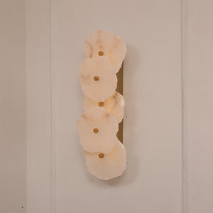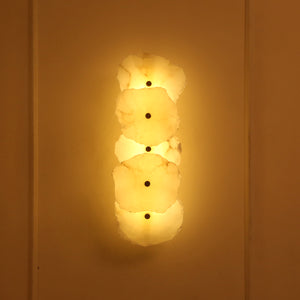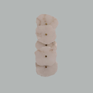 The Marble Gaze Quintuple LED Wall Light brings a touch of natural artistry to your home. Crafted with brass-finished metal and unique marble stone slices, it exudes a sophisticated and organic charm. Ideal for bedrooms, living rooms, and dining areas, this light provides a soft, ambient glow. The natural variations in the marble create a one-of-a-kind piece, enhancing your interior with its refined and timeless aesthetic. The Marble Gaze Quintuple LED Wall Light is a perfect blend of natural beauty and modern lighting design.