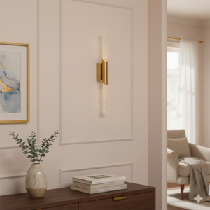 The Snow Flake LED Wall Light is a stunning blend of modern elegance and warm illumination. Designed with brass-finished metal and beautifully crafted transparent glass, it radiates a crystal-like glow that enhances any space. The elongated design spreads light both upward and downward, creating a sophisticated ambience. Perfect for living rooms, dining rooms, and bedrooms, this wall light adds a refined touch and transforms your interior with its luxurious and radiant charm.