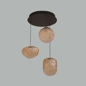 The Glowing Lights (3 Lights) LED Chandelier features a stunning design, perfect for adding elegance to your living room, dining room, or bedroom. It’s truly beautiful to behold! The chandelier is crafted with a black-finished metal canopy and features exquisitely designed amber glass shades. The warm, glowing light emanating from the three pendants creates a cozy and sophisticated atmosphere in any space.