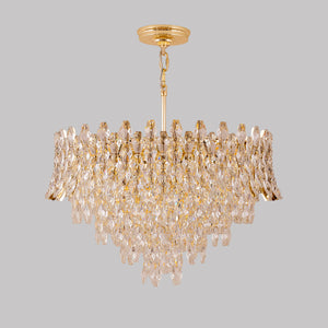Imagine the soft, rhythmic clinking of fine crystal as a gentle breeze passes through your room, followed by the sight of golden light dancing across your walls. The Nova Crystal Chandelier isn't just a fixture; it’s a centerpiece that bridges the gap between industrial structure and vintage royalty. Whether you are hosting an intimate dinner or unwinding after a long day, this chandelier bathes your home in a rich, amber-hued warmth that feels like a permanent golden hour.