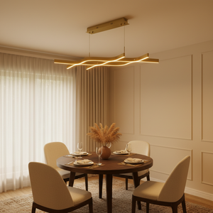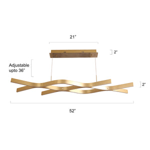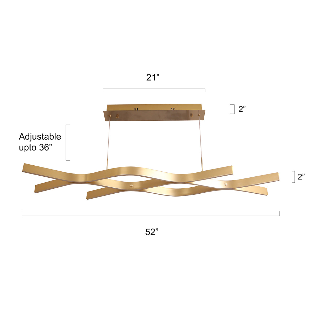 The Ocean Waves LED Chandelier features a stunning flow-inspired design that brings elegance and motion to your interiors. Crafted with brass-finished metal and smooth acrylic, the light creates a warm golden glow that beautifully enhances your space. Its wavy linear form resembles gentle ocean waves, adding a modern artistic touch. Perfect for living rooms, dining rooms, and bedrooms, this chandelier transforms any room into a sophisticated and relaxing ambiance.