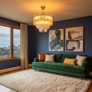 Bring the opulence of the roaring twenties into your home with the Regalia Glow Chandelier. Blending Art Deco geometry with Hollywood Regency flair, this fixture creates a shimmering focal point that feels both vintage and refreshingly modern.