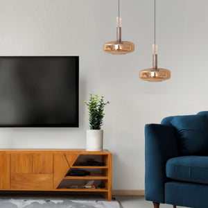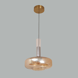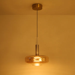 The Sanctuary LED Pendant Light adds a warm, elegant glow to any room. It features a brass-finished metal base, a refined grey metal body, and a mix of amber and transparent glass that creates a beautiful layered lighting effect. The illumination makes the space feel cozy and stylish. This pendant light looks truly beautiful and is an excellent choice for the living room, breakfast counter, bedrooms corner, enhancing the atmosphere with its modern design.