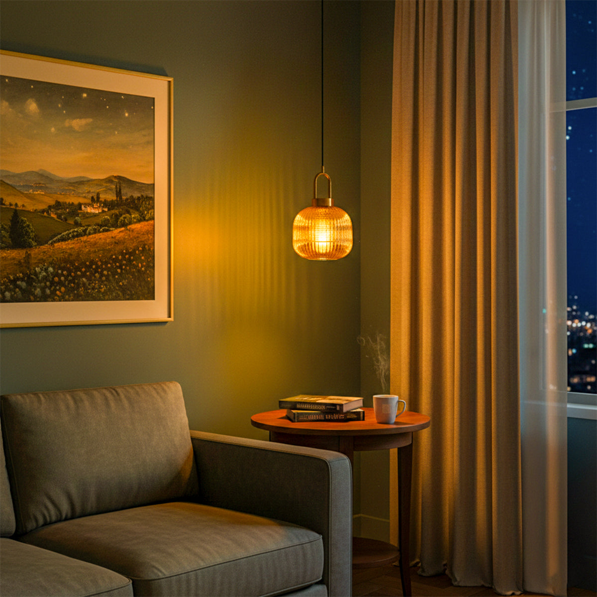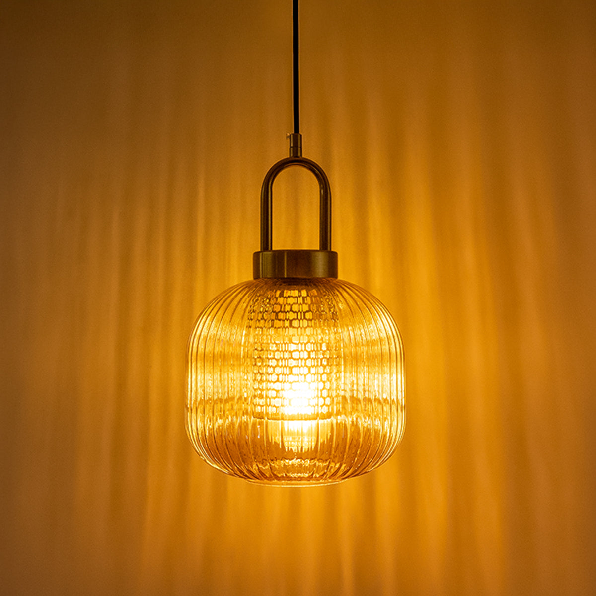 Artistic Shadow Play: The ribbed amber glass acts as a prism, diffusing light into a stunning radial pattern so your walls become a decorative feature themselves.