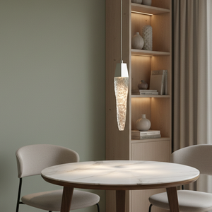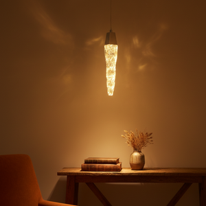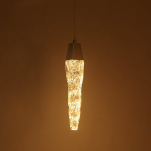 The Snow Flake LED Pendant Light is an elegant and eye-catching lighting piece that brings a cool, radiant charm to any room. Designed with silver-finished metal and textured transparent glass, it glows beautifully like frozen crystal. Its slender form and shimmering light effect create a sophisticated ambience, perfect for living rooms, dining areas, or bedrooms. This pendant light adds a touch of luxury and modern elegance, enhancing your interiors with a refined icy brilliance.