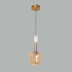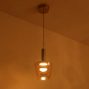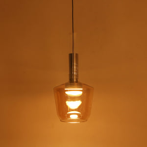 The Solace LED Pendant Light brings a warm and elegant glow to any space. The design features a Gold-finished metal base, grey metal body, and a blend of amber and transparent glass that enhances its rich lighting effect. When turned on, the light looks truly beautiful, creating a cozy and premium ambience. It suits living rooms, breakfast counter, and bedroom corners perfectly, adding both charm and modern character to the décor.