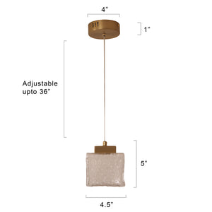 The Stories Medium LED Pendant Light is a stunning blend of style and charm, designed to elevate any interior. Crafted with brass-finished metal and textured transparent glass, it emits a warm, radiant glow that enhances the room’s ambience. The square glass shade creates a beautiful light pattern on the walls, adding depth and elegance. Perfect for living rooms, dining areas, or bedrooms, this pendant light brings a graceful modern touch to your decor.