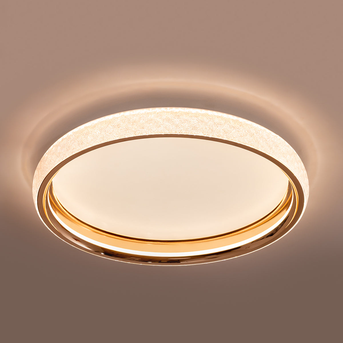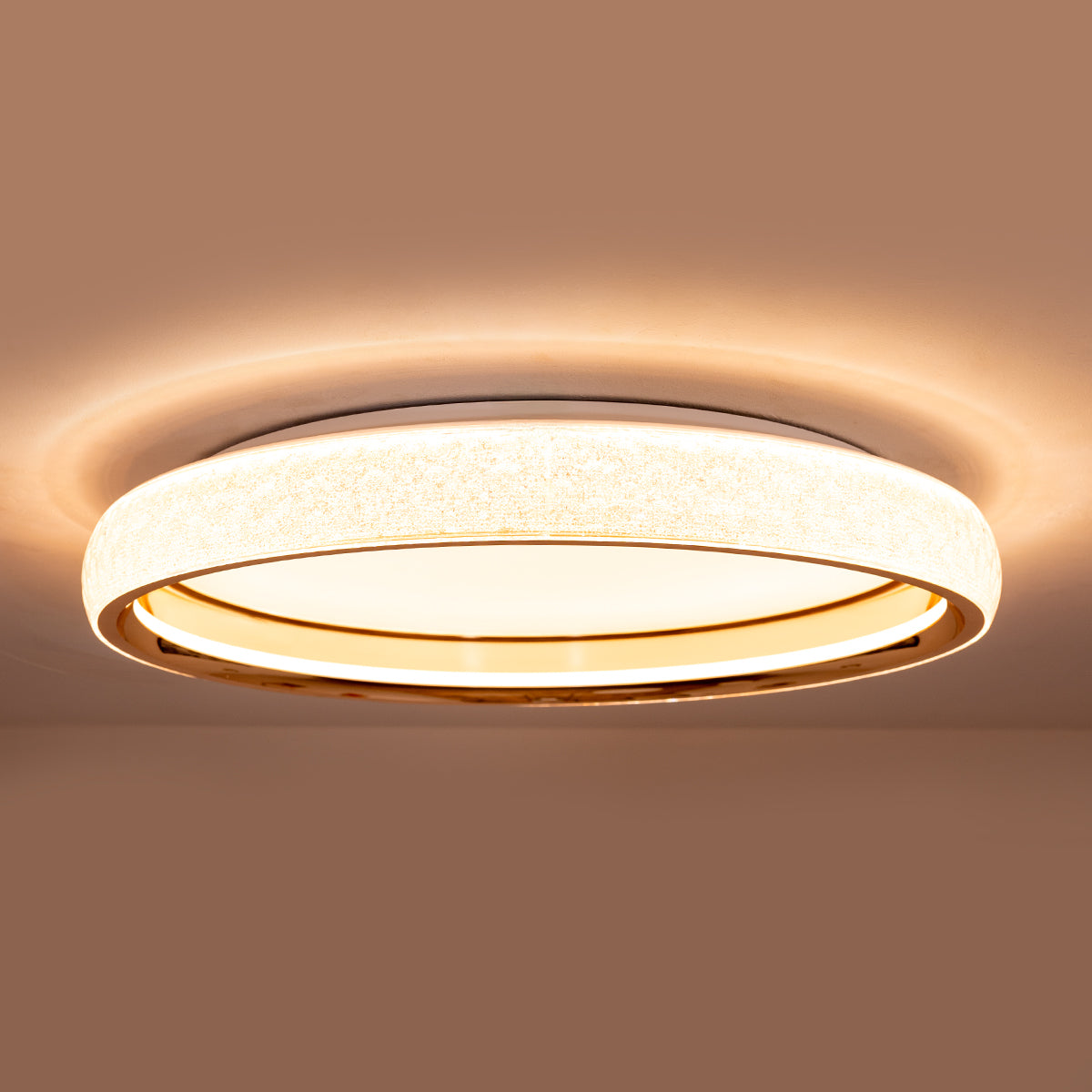 Imagine your living space bathed in a seamless, halo-like glow that adapts to your every mood. The Trinity doesn’t just light up a room; it crowns it with a sophisticated rose gold ring and a textured, crystal-like diffusion that transforms a plain ceiling into a focal point of modern luxury. Whether you’re winding down for the evening or hosting an upbeat gathering, this light sets the stage perfectly.
