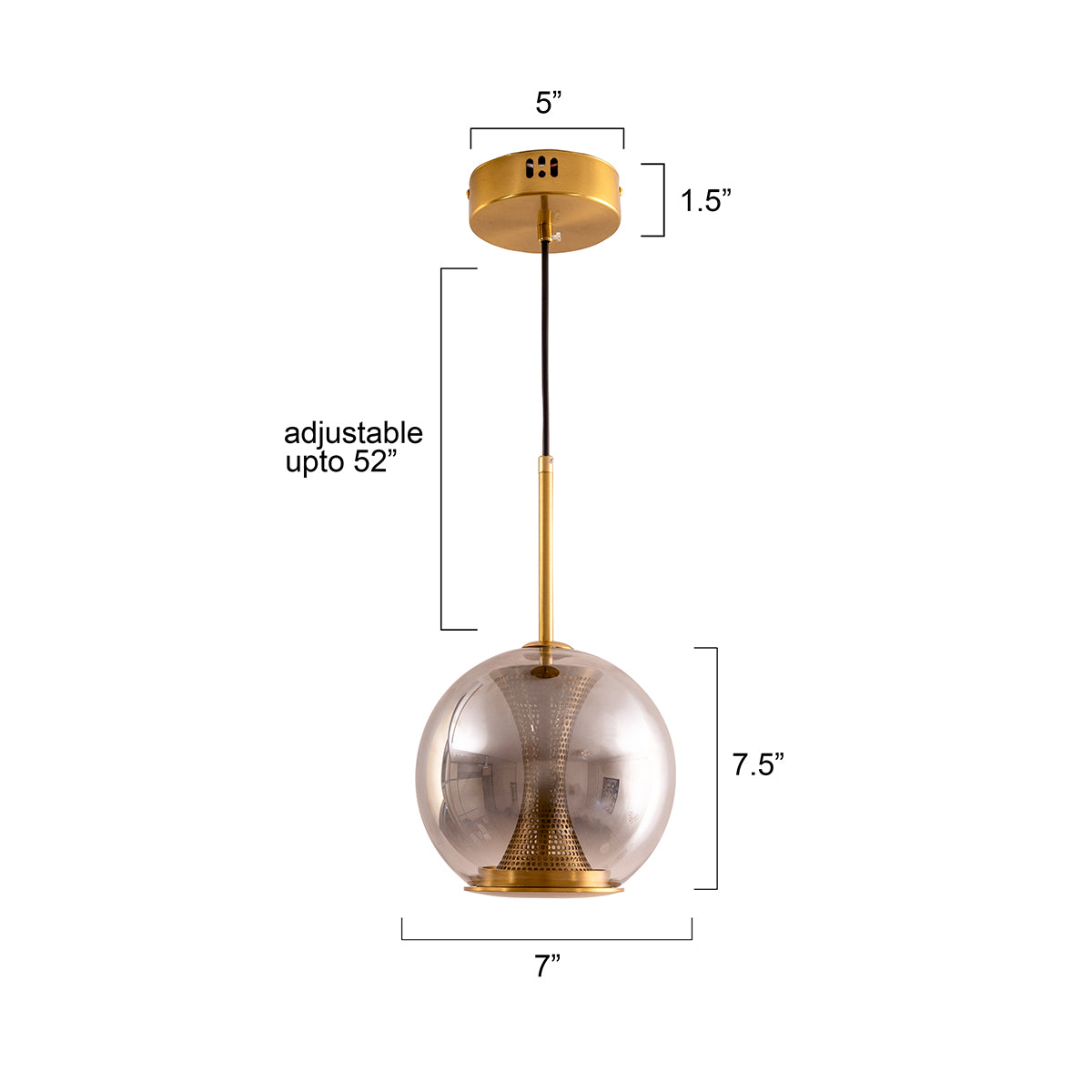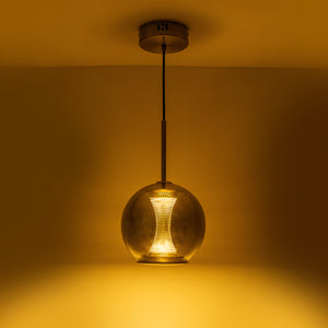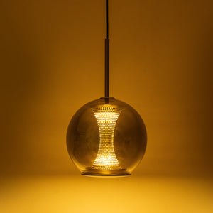 The "Glowing Core": The internal LED illuminates the brass mesh core, making the pendant look like it's holding a captured fire inside smoked glass.