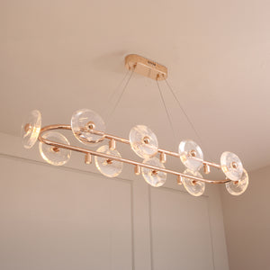 The Winter Sky LED Chandelier brings a warm, inviting charm to any space. Crafted with a Rose gold-finished metal frame and elegant designed glass shades, this light adds a refined glow that enhances living rooms, dining areas, and bedrooms beautifully. Its bright LED illumination creates a good ambience, while the clean, linear design keeps the look modern and stylish. This chandelier is perfect for creating a naturally warm atmosphere with a touch of sophistication.
